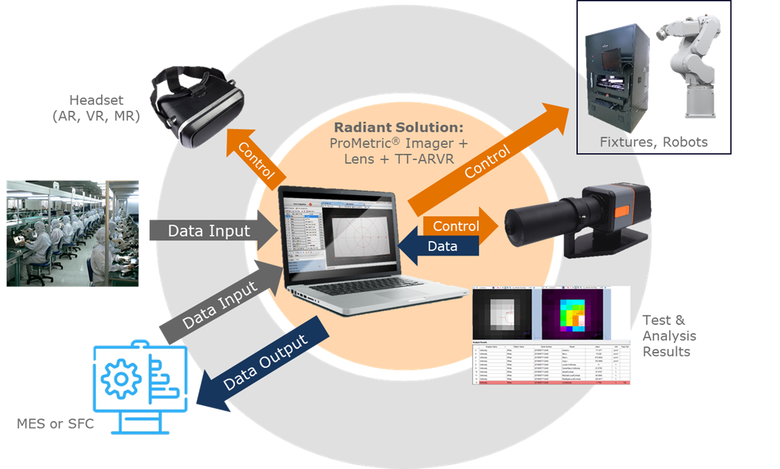 Example of production-level test system integration using Radiant’s TT-ARVR Software, imaging systems, lenses, and other manufacturing systems. Image credit: Radiant Vision Systems