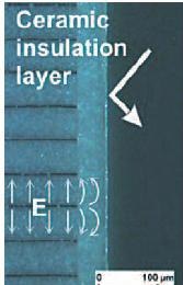 PI reduces the probability of crack formation by using a particular patented design with lateral slots. These reliably prevent the mechanical tensile stresses in the stack from becoming too high and the formation of uncontrolled additional cracks (Fig. 7). Furthermore, the patented meander-shaped construction of the termination electrodes (see Fig. 2) ensures all internal electrodes have a stable electrical contact even at extreme dynamic loads.