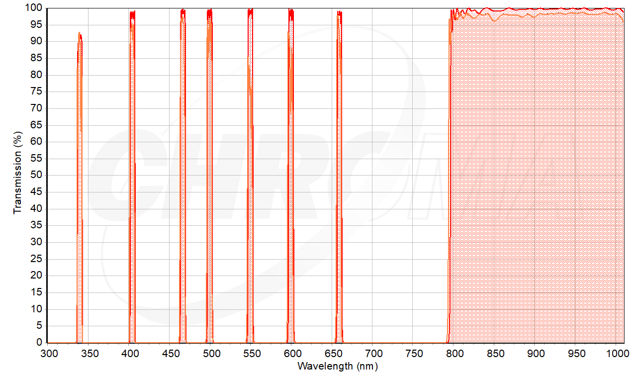 Numbers of bands and bandwidth variation: Chroma Technology regularly manufactures four- and five-band filters, and the company has also demonstrated its capacity to create multiband filters with seven distinct bands.