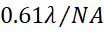 being the wavelength of light, and NA being the Numerical aperture. The value