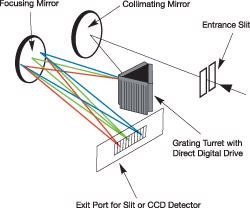 The grating is typically a holographic surface relief pattern with a reflective overcoat. This is the simplest possible spectrograph design and, therefore, is very compact and inexpensive.