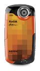 The KODAK PLAYSPORT Video Camera has an orange pixilated design that bears a resemblance to the Burton Custom 154 Snowboard. It comprises a gear with a custom Camera Holster, a 4 GB KODAK SDHC Memory Card, and a KODAK Lithium-Ion Rechargeable Digital Camera Battery.