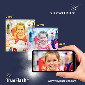 “Skyworks is at the forefront of camera flash innovation and is excited to offer our customers truly differentiated solutions,” said Dipti Vachani, vice president and general manager of power, lighting and display at Skyworks. “Our device with integrated TrueFlash™ capability is the only solution on the market offering significantly enhanced smartphone camera image quality to improve the user experience.”