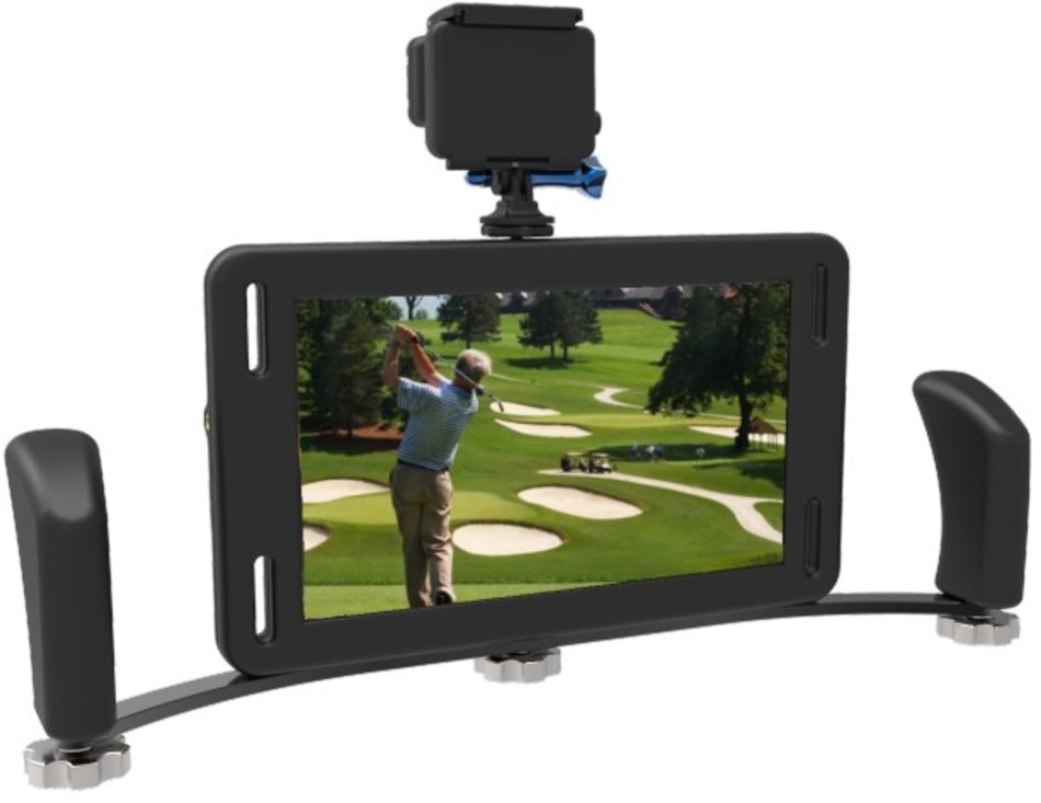 Direct sunlight viewable, ultra-bright 10.1" SunScreen Eos shown with optional grip system and an action camera attached. Can also be used wirelessly with any Smartphone or directly with a laptop. Several mounting accessories for multiple use cases are available. Power options include AC adaptor, long life attachable battery, or direct power via USB. Sunscreen debuts on Indiegogo Monday, June 26th at 8:00am PDT starting at $259. www.sunscreendisplays.com