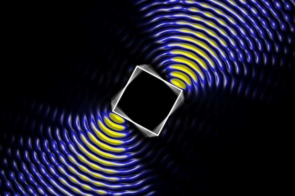 Tailored light wave—Intensity distribution of an electric wave field that applies a well-defined torque onto the quadratic target. Image Credit: © TU Wien.