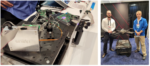 At Photonics West 2022, Mirrorcle continues to offer MEMS Mirror Modules and subsystems, and adds System solutions for 3D Perception Sensing (SyMPL 3D LiDAR) and Visual Messaging (RGB Playzer). There were products and demonstrations with Mirrorcle MEMS at various booths on the exhibition floor, as well as new contacts made in the robotics and drone industries to help integrate the Lidar and Playzer technologies into their applications. Image Credit: Mirrorcle Technologies