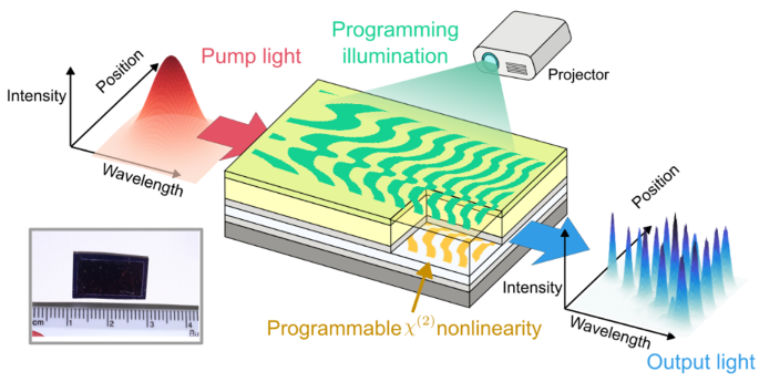Using this new device, researchers successfully demonstrated arbitrary pulse shaping, widely tunable second-harmonic generation, holographic generation of spatio-spectrally structured light and real-time inverse design of nonlinear-optical functions in a way that is robust against fabrication errors and environmental drifts.