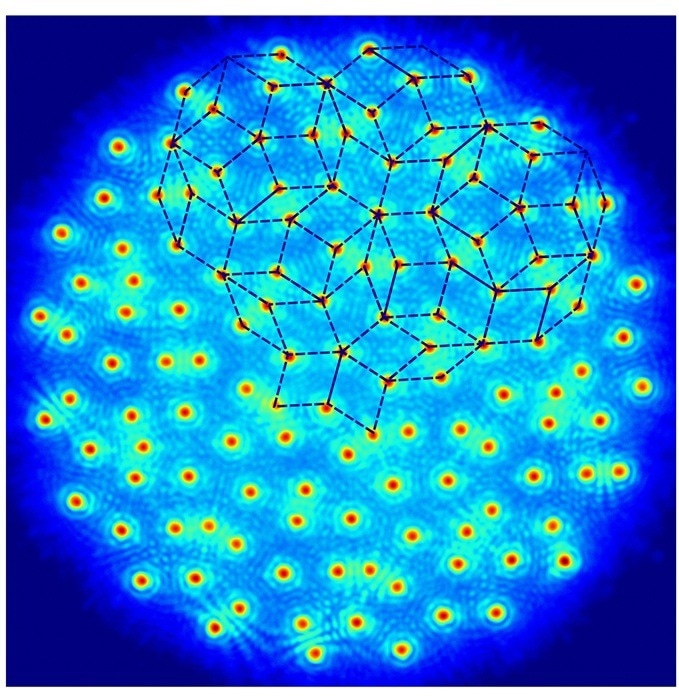 The breakthrough, published in the prestigious journal Science Advances and supported by Grant No. 24-72-10118 from the Russian Science Foundation, was achieved using exciton-polaritons - hybrid quasiparticles that are part light and part matter. By arranging these polaritons in a Penrose tiling, a famous aperiodic pattern with five-fold symmetry, the team observed the emergence of a macroscopic coherent state where the individual nodes synchronized in a nontrivial way, unlike anything seen in conventional periodic crystals.